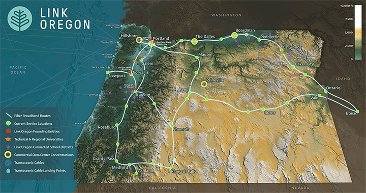 Link Oregon is a federally tax-exempt 501(c)(3) Oregon non-profit organization—a consortium of the State of Oregon, through its Enterprise Information Services department, and Oregon’s four largest research universities: Oregon Health & Science University, Oregon State University, Portland State University, and the University of Oregon. It provides Oregon’s high-speed middle-mile fiber broadband network for the state’s public and non-profit sectors. Link Oregon seeks to enhance research, education, healthcare, and access to public services and information across the state by supporting Tribal facilities, K-12 and higher education, university research, libraries, public healthcare organizations, and other public and non-profit organizations statewide. For more information, please visit www.LinkOregon.org.